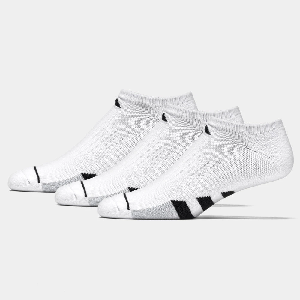Slip on adidas Cushioned II 3-Pack No Shoe Socks to stay cool and comfortable on the run! AEROREADY drying technology removes moisture to keep you dry during exercise. The full cushioned footbed creates plush comfort, while compression in the arch increases support.